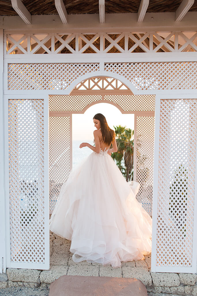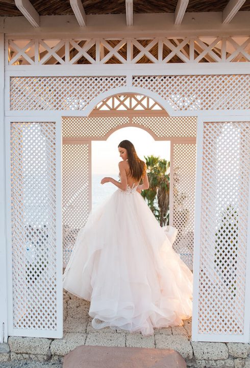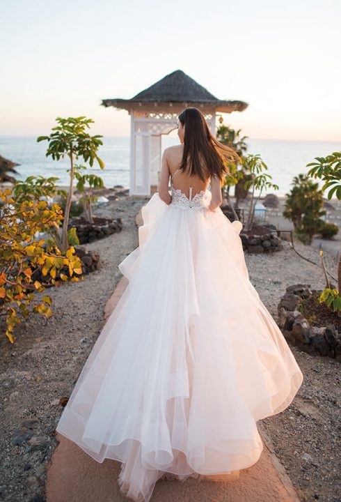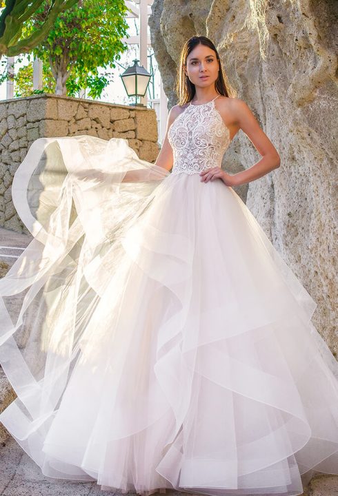 Свадебное платье А-силута с закрытой спинкой (застежка на пуговки и молнию).